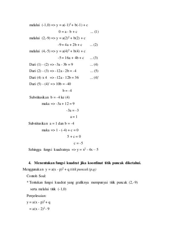 Download rangkuman contoh soal fungsi kuadrat dalam bentuk pdf klik disini. Menentukan fungsi kuadrat jika koordinat titik puncak diketahui. Contoh soal pembahasan.