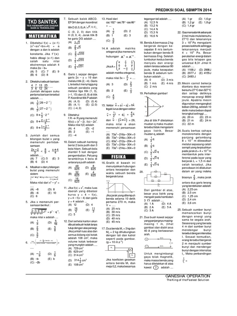 Soal Dan Kunci Jawaban Prediksi SBMPTN 2014 by GO