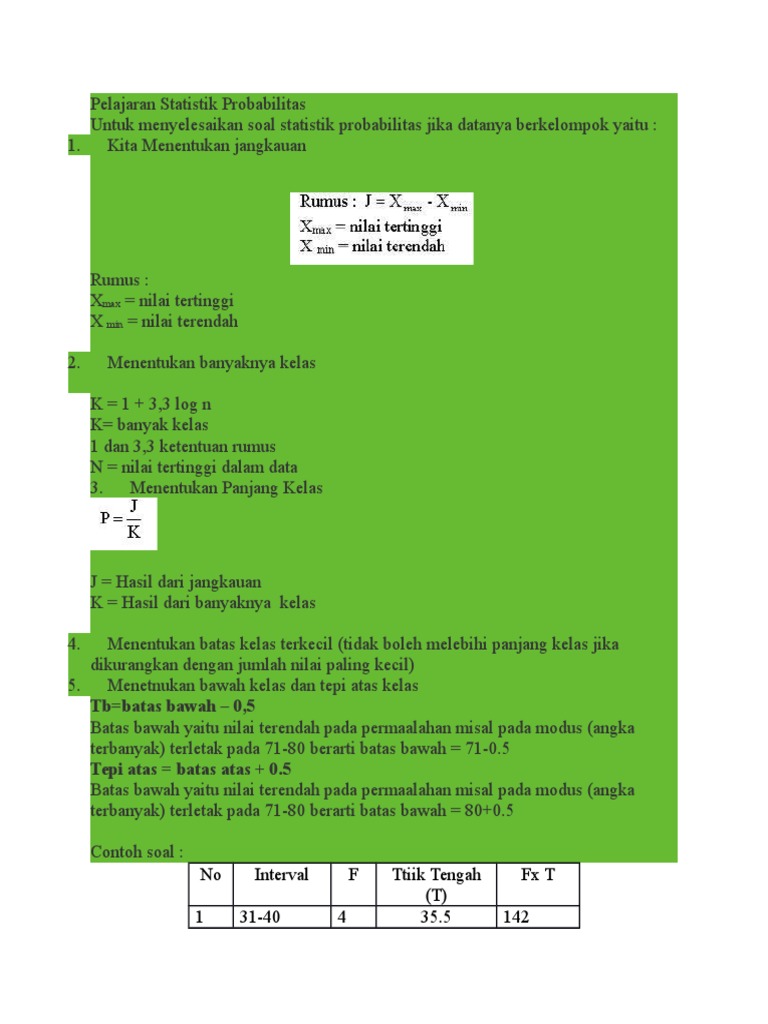 Pelajaran, Soal, & Rumus Statistika Data Berkelompok ...