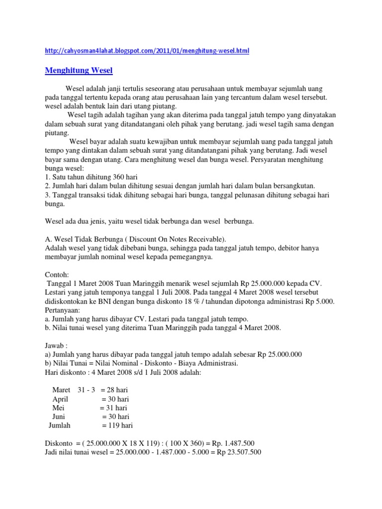 Contoh Soal Utang Wesel Berbunga Dan Tidak Berbunga ...